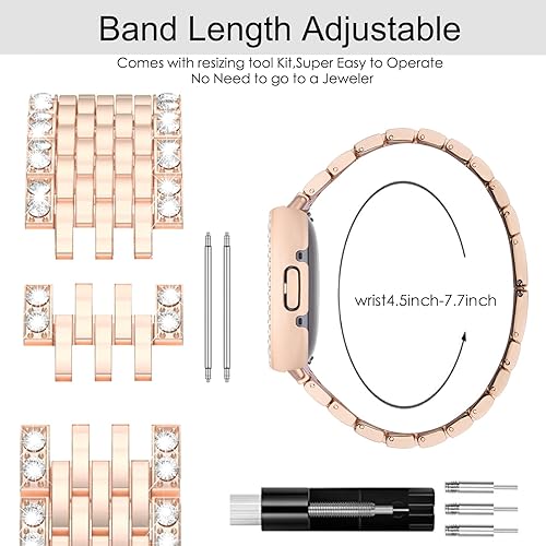 【Premium Material】This bling Fitbit Versa 4 bands for women made of superior metal and shinny rhinestones diamond decoration, well polished, no sharp edges design,water/sweat-proof, robust and comfortable to wear. The hard bling protective case cover all around protects your watch from scratch, bumps and accidental drops
