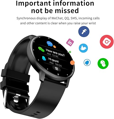 [Intelligent Notification Reminder]: The fitness watch is connected to the high-speed Bluetooth to get messages reminder, including SMS, email, Facebook, WhatsApp, Twitter, Line, Skype, etc.