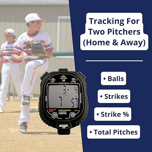 TWO PITCHER PITCH COUNTER: Tracks balls, strikes, and strike percentage for comprehensive performance analysis; Seamlessly switch between two pitchers