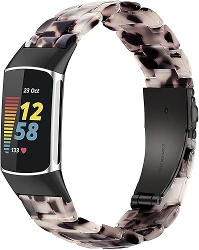 【Comfortable to wear】:Our Fitbit Charge 6/Charge 5 Bands for Women Men is made of premium resin, no smell, no skin irritation,Each piece of resin is slowly polished by the experienced artificers.Combined with premium tortoise-tone Resin, it offers a new bracelet look for your smart watches,Perfect accessory for your watch
